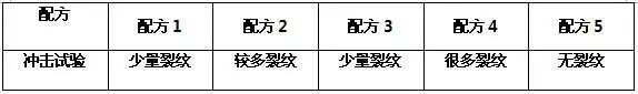 從表1中可看出:配方5做出的涂塑樣板沖擊后無裂紋,其它4個配方的涂塑樣板都有裂紋。