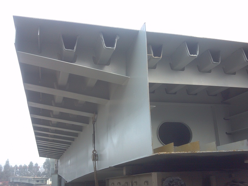鋼箱梁外壁采用:環(huán)氧富鋅底漆+環(huán)氧云鐵中間漆+丙烯酸脂肪族聚氨酯面漆